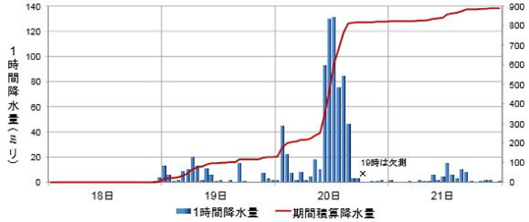 2010 年に奄美大島で、記録的な豪雨が降りました。奄美市名瀬では、24 時間雨量が 648 ㎜でした。奄美市住用町の3時間雨量は、100 年に 1 回起きると想定される雨量の何と 1.8倍で、いわば1000年に1回ともいえる豪雨です。